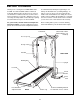 DIAGRAM OF THE CONSOLE Monitor Displays Speed Control Clip Incline Control Key CAUTION: Before operating the console, read the following precautions. • Adjust the speed in small increments. • The training zones marked beside the speed control are general guidelines only. See page 14 for more information. • Do not stand on the walking belt when turning on the power. • Always wear the clip (see the drawing above) while using the treadmill.