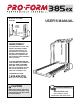 BEFORE YOU BEGIN Thank you for selecting the PROFORM¨ 385EX treadmill. The 385EX treadmill combines advanced technology with innovative design to let you enjoy an excellent form of cardiovascular exercise in the convenience and privacy of your home. And when youÕre not exercising, the unique 385EX can be folded up, requiring less than half the floor space of other treadmills. at 1-800-999-3756, Monday through Friday, 6 a.m. until 6 p.m. Mountain Time (excluding holidays).