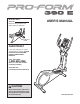 BEFORE YOU BEGIN Thank you for purchasing the PROFORM® 390 E elliptical. The 390 E elliptical provides an array of features designed to make your workouts at home more effective and enjoyable. manual. To help us assist you, note the product model number and serial number before contacting us. The model number and the location of the serial number decal are shown on the front cover of this manual. For your benefit, read this manual carefully before you use the elliptical.