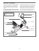 . Identify the Right Pedal (21). 14 Using an adjustable wrench, firmly tighten the Right Pedal (21) clockwise into the Right Crank Arm (23). Strap Post Firmly tighten the Left Pedal (not shown) counterclockwise into the Left Crank Arm (not shown). 23 If necessary, press the right strap onto the post on the Right Pedal (21). To loosen the strap, press the indicated tab and pull the strap upward. To tighten the strap, simply pull the end of the strap downward.