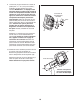 9. La Console (10) peut fonctionner à l'aide de quatre piles « D » de 1,5 V (non-incluses) ; l'utilisation de piles alcalines est recommandée. IMPORTANT : si lʼelliptique a été entreposé dans une pièce froide, laissez-le revenir à la température ambiante avant de lʼallumer. Si vous ne suivez pas cette consigne, les écrans de la console et d'autres composantes électriques peuvent être endommagés.