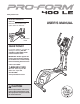 BEFORE YOU BEGIN Thank you for purchasing the PROFORM® 400 LE elliptical. The 400 LE elliptical provides an array of features designed to make your workouts at home more effective and enjoyable. manual. To help us assist you, note the product model number and serial number before contacting us. The model number and the location of the serial number decal are shown on the front cover of this manual. For your benefit, read this manual carefully before you use the elliptical.
