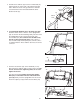 HOW TO LOWER THE TREADMILL FOR USE 1. Hold the treadmill with your right hand as shown. Pull the latch knob to the left and hold it. Pivot the frame down until it is past the latch pin. Latch Knob Frame 2. Hold the metal frame firmly with both hands, and lower it to the floor. CAUTION: To decrease the possibility of injury, do not lower the frame by gripping only the plastic foot rails. Do not drop the frame to the floor. Make sure to bend your legs and keep your back straight.