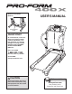 BEFORE YOU BEGIN Thank you for selecting the PROFORM® 400 X treadmill. The 400 X treadmill combines advanced technology with innovative design to help you achieve your fitness goals in the convenience and privacy of your home. And when you’re not exercising, the 400 X treadmill can be folded up, requiring less than half the floor space of other treadmills. number and serial number before calling. The model number of the treadmill is PFTL39706.1.