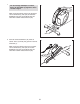 HOE DE ELLIPTISCHE TRAINER TE GEBRUIKEN DE HELLING VAN HET HELLINGSPLATFORM VERANDEREN DE ELLIPTISCHE TRAINER VERPLAATSEN Gezien de afmetingen en de zwaarte van de elliptische trainer, moet deze door twee personen verplaatst worden. Ga aan de voorzijde van de elliptische trainer staan, houd de staander vast en plaats een voet tegen een van de voorwielen. Trek aan de staander en laat een tweede persoon de hendel optillen tot de elliptische trainer rolt op de wielen.