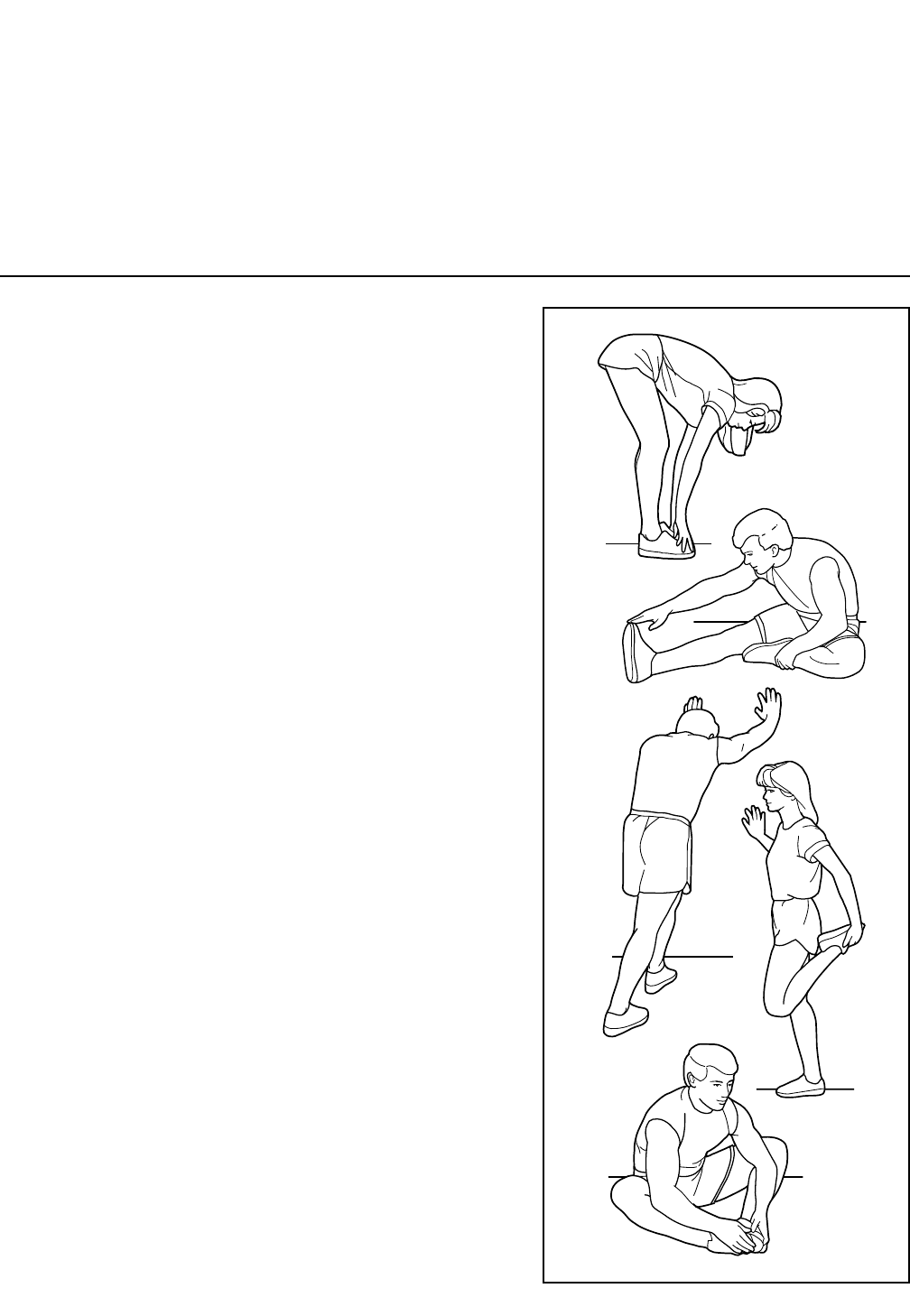 counts, then relax. Repeat 3 times. Stretches: Hamstrings,