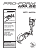 www.proform.com Model No. PFEL64910.0 Serial No. Write the serial number in the space above for reference. Serial Number Decal (under frame) QUESTIONS? If you have questions, or if parts are damaged or missing, DO NOT CONTACT THE STORE; please contact Customer Care. IMPORTANT: Please register this product (see the limited warranty on the back cover of this manual) before contacting Customer Care. 1-888-533-1333 CALL TOLL-FREE: Mon.–Fri., 6 a.m.–6 p.m. MT Sat. 8 a.m.–4 p.m. MT ON THE WEB: www.