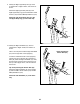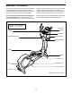 MAINTENANCE AND TROUBLESHOOTING Inspect and tighten all parts of the elliptical regularly. Replace any worn parts immediately. Next, locate the Reed Switch (69). Loosen, but do not remove, the M4 x 16mm Screw (93). To clean the elliptical, use a damp cloth and a small amount of mild soap. IMPORTANT: To avoid damage to the console, keep liquids away from the console and keep the console out of direct sunlight. 93 69 CONSOLE TROUBLESHOOTING 74 75 Most console problems are the result of low batteries.