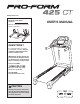 BEFORE YOU BEGIN Thank you for selecting the new PROFORM® 425 CT treadmill. The 425 CT treadmill offers an impressive selection of features designed to make your workouts at home more enjoyable and effective. And when you’re not exercising, the unique treadmill can be folded up, requiring less than half the floor space of other treadmills. reading this manual, please see the front cover of this manual. To help us assist you, please note the product model number and serial number before contacting us.