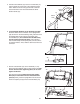HOW TO LOWER THE TREADMILL FOR USE 1. Hold the treadmill with your right hand as shown. Pull the latch knob to the left and hold it. Pivot the frame down until it is past the latch pin. Latch Knob Frame 2. Hold the metal frame firmly with both hands, and lower the frame to the floor. CAUTION: To decrease the possibility of injury, do not lower the frame by gripping only the plastic foot rails. Do not drop the frame to the floor. Make sure to bend your legs and keep your back straight.