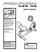 Model No. PFEX44277.0 Serial No. USER'S MANUAL Serial Number Decal QUESTIONS? As a manufacturer, we are committed to providing complete customer satisfaction. If you have questions, or if parts are damaged or missing, PLEASE CONTACT OUR CUSTOMER SERVICE DEPARTMENT DIRECTLY. CALL TOLL-FREE: 1-888-533-1333 Mon.–Fri., 6 a.m.–6 p.m. MST ON THE WEB: www.proformservice.com CAUTION Read all precautions and instructions in this manual before using this equipment. Keep this manual for future reference.