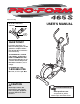 BEFORE YOU BEGIN Congratulations for selecting the PROFORM® 465S elliptical trainer. The 465S is an incredibly smooth exerciser that moves your feet in a natural elliptical path, minimizing the impact on your knees and ankles. And the unique 465S features adjustable resistance, upper-body handlebars, and a multi-mode console to help you get the most from your exercise. Welcome to a whole new world of natural, elliptical-motion exercise from PROFORM.