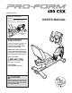 www.proform.com Model No. PFEX73908.1 Serial No. Write the serial number in the space above for future reference. Serial Number Decal QUESTIONS? If you have questions, or if parts are damaged or missing, DO NOT CONTACT THE STORE; please contact Customer Care. IMPORTANT: Please register this product (see the limited warranty on the back cover of this manual) before contacting Customer Care. 1-888-533-1333 CALL TOLL-FREE: Mon.–Fri., 6 a.m.–6 p.m. MT Sat. 8 a.m.–4 p.m. MT ON THE WEB: www.