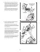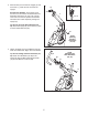 . Identify the Right Pedal (21), which is marked with an “R.” Using an adjustable wrench, firmly tighten the Right Pedal (21) clockwise into the Right Crank (23). Tighten the Left Pedal (not shown) counterclockwise into the Left Crank (not shown). IMPORTANT: Tighten both Pedals as firmly as possible. After using the exercise cycle for one week, retighten the Pedals. 11 23 21 Strap Tab To loosen the strap on the Right Pedal (21), press the indicated tab and pull the strap upward.