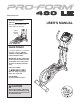 BEFORE YOU BEGIN Thank you for purchasing the PROFORM® 480 LE elliptical. The 480 LE elliptical provides an array of features designed to make your workouts at home more effective and enjoyable. manual. To help us assist you, note the product model number and serial number before contacting us. The model number and the location of the serial number decal are shown on the front cover of this manual. For your benefit, read this manual carefully before you use the elliptical.