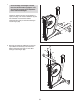3. Zie de inzettekening. Houd de hendel vast, druk op de vergrendelknop en vouw de elliptische trainer uit zodat de Achterste stabilisator (3) op de grond rust. 3 3 Hendel 3 Vergrendeingsknop 4. Terwijl een andere persoon de Staander (10) vasthoudt bij het Onderstel (1), dient u de Draadkoker (64) te plaatsen door de Staander. 4 Tip: Om te voorkomen dat de Draadkoker (64) in de Staander (10) valt, maakt u de Draadkoker vast met een rubberen band.