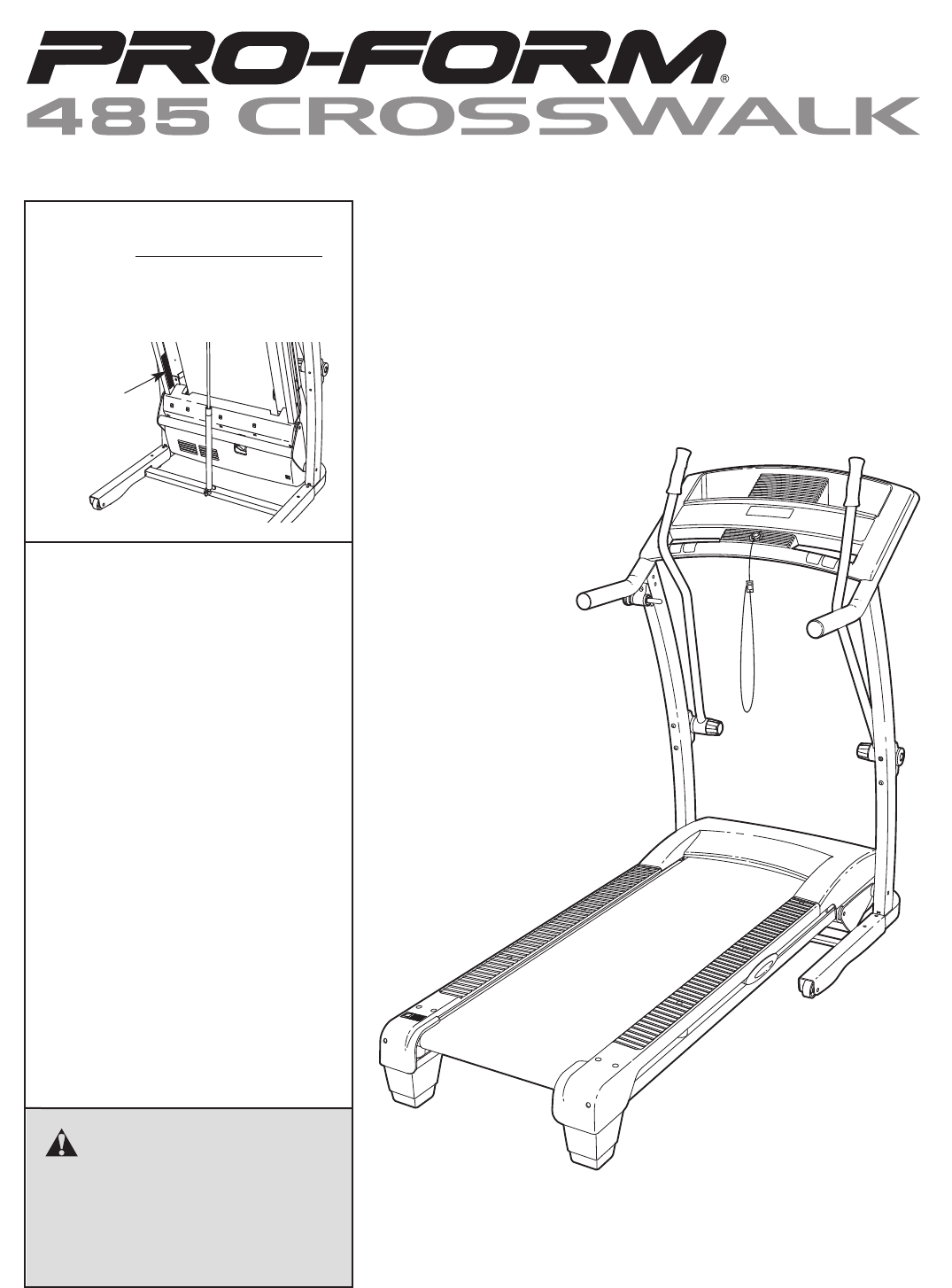 BEFORE YOU BEGIN Thank you for selecting the new PROFORM® 485 CROSSWALK treadmill. The 485 CROSSWALK treadmill offers a selection of features designed to make your workouts at home more effective and enjoyable. And when youʼre not exercising, the treadmill can be folded up, requiring less than half the floor space of other treadmills. ing this manual, please see the dealer contact information on the back cover of this manual or on the included service card.