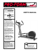 IMPORTANT PRECAUTIONS WARNING: To reduce the risk of serious injury, read the following important precautions before using the PROFORM® 485E. 1. Read all instructions in this manual before using the elliptical exerciser. 8. Wear appropriate clothing when using the elliptical exerciser. Always wear athletic shoes for foot protection. 2. Use the elliptical exerciser only as described in this manual. 9.