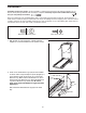 HOW TO LOWER THE TREADMILL FOR USE 1. Hold the upper end of the treadmill with your right hand as shown. Using your left thumb, press the storage latch and hold it. Pivot the treadmill until the frame and foot rail are past the storage latch. Storage Latch 2. Hold the treadmill firmly with both hands, and lower the treadmill to the floor. To decrease the possibility of injury, bend your legs and keep your back straight.