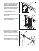 8. Draai nog vier Schroeven (3) met uw vingers in het onderstel van het bedieningspaneel en de Handleuning (20). Draai dan de negen Schroeven van stap 7 en deze stap strak vast; draai de Schroeven niet te strak vast. 8 Bedieningspaneel-onderstel Sluit het netsnoer aan zoals beschreven op bladzijde 11, en schakel de netstroom in zoals beschreven op bladzijde 13. Opmerking: De loopband kan automatisch naar het hoogste hellingsniveau stijgen en dan naar het laagste niveau terugkeren. 9.