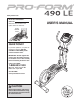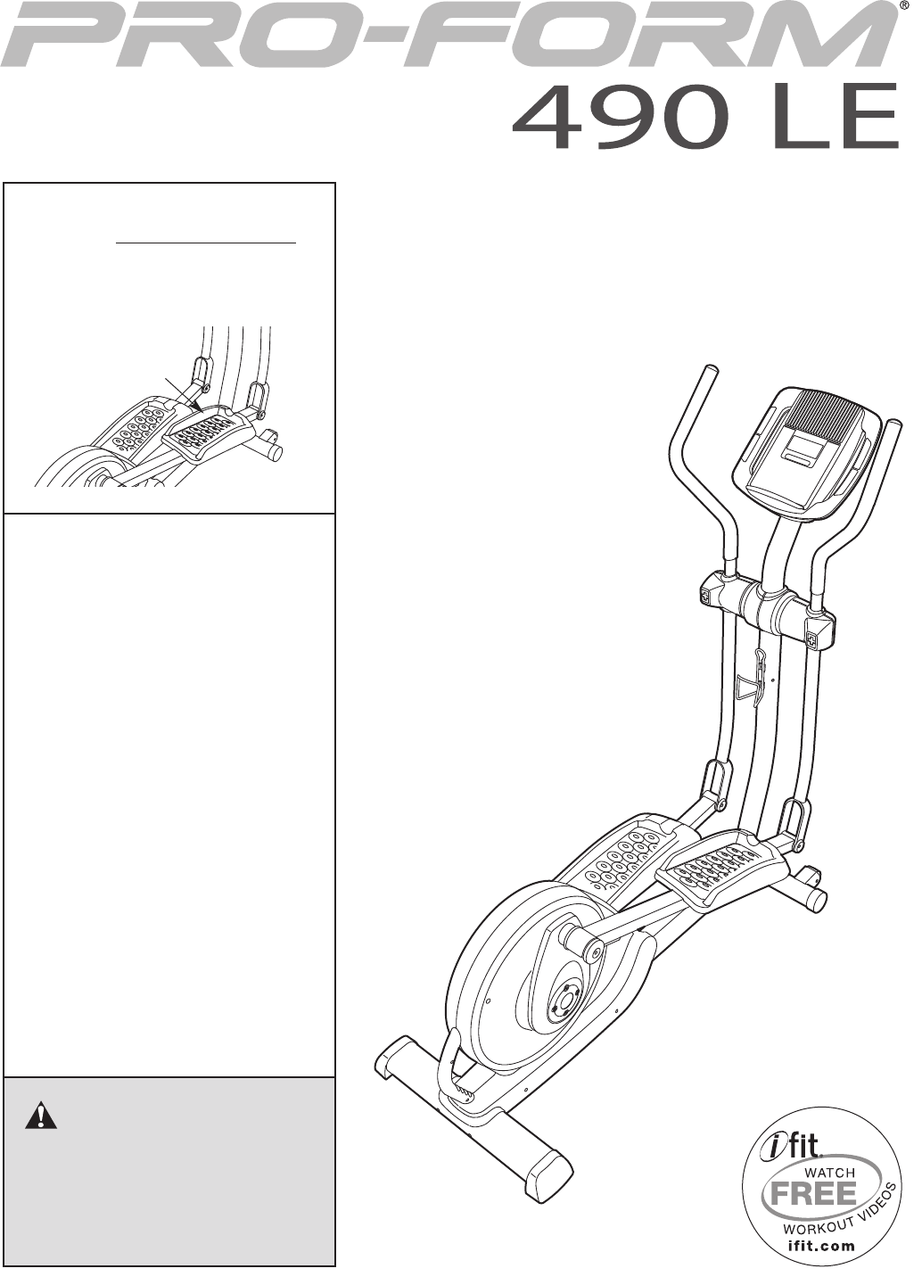 BEFORE YOU BEGIN Thank you for purchasing the PROFORM® 490 LE elliptical. The 490 LE elliptical provides an array of features designed to make your workouts at home more effective and enjoyable. manual. To help us assist you, note the product model number and serial number before contacting us. The model number and the location of the serial number decal are shown on the front cover of this manual. For your benefit, read this manual carefully before you use the elliptical.