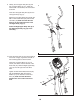 HOW TO USE THE ELLIPTICAL HOW TO MOVE THE ELLIPTICAL HOW TO FOLD AND UNFOLD THE ELLIPTICAL To move the elliptical, first fold it as described at the left. Next, stand in front of the elliptical, hold the handle on the upright, and place one foot against the center of the front stabilizer. Pull the handle until the elliptical will roll on the front wheels. Carefully move the elliptical to the desired position, and then lower it. When the elliptical is not in use, the frame can be folded out of the way.