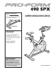 VOORDAT U BEGINT Dank u dat u hebt gekozen voor de nieuwe PROFORM® 490 SPX trainingfiets. Fietsen is een effectieve oefening voor het verbeteren van hart en vaten, het opbouwen van uithoudingsvermogen en het vormgeven aan het gehele lichaam. De 490 SPX trainingfiets biedt een reeks functies die zijn ontwikkeld om uw oefeningen thuis effectiever en leuker te maken. Raadpleeg de omslag van deze handleiding als u nog vragen hebt. Noteer het productnummer en het serienummer voordat u met ons contact opneemt.