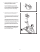 7. Zoek naar het Rechter Pedaal (39), die met een “R” is aangegeven (L of Left geeft links aan; R of Right geeft rechts aan). 7 Draai met gebruik van een verstelbare sleutel het Rechter Pedaal (39) met de klok mee goed vast in de Rechter Crankarm (26). 26 Draai het Linker Pedaal (niet getoond) met de klok mee in de Linker Crankarm (niet getoond). BELANGRIJK: draai beide pedalen zo goed mogelijk vast. Draai de pedalen nog eens vast nadat u de trainingfiets een week gebruikt heeft. 39 8.