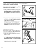 HOW TO LOWER THE TREADMILL FOR USE 1. Hold the upper end of the treadmill with your right hand as shown. Using your left thumb, press the storage latch and hold it. Pivot the treadmill until the frame and foot rail are past the storage latch. Storage Latch Unlatched 2. Hold the treadmill firmly with both hands, and lower the treadmill to the floor. To decrease the possibility of injury, bend your legs and keep your back straight.