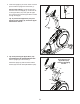 11. Tip: Avoid pinching the wires. Attach the Console (7) to the Upright (4) with four M4 x 16mm Screws (101). 11 7 Avoid pinching the wires 101 4 101 12. Orient the Right Pedal Arm (58) as shown. 12 Apply grease to the axle on the Right Pedal Arm (58). Attach the Right Pedal Arm (58) to the Right Roller Arm (59) with an M8 x 14mm Shoulder Screw (119), a Small Axle Cover (55), and an M8 Washer (97). Repeat this step for the Left Pedal Arm (44).