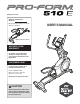 www.proform.com Model No. PFEL05811.4 Serial No. Write the serial number in the space above for reference. Serial Number Decal ACTIVATE YOUR WARRANTY To register your product and activate your warranty today, go to www.proformservice.com/ registration. CUSTOMER CARE For service at any time, go to www.proformservice.com. Or call 1-888-533-1333 Mon.–Fri. 6 a.m.–6 p.m. MT Sat. 8 a.m.–4 p.m. MT Please do not contact the store.