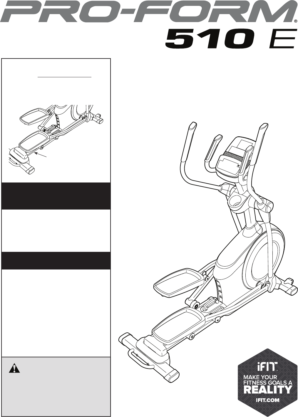 BEFORE YOU BEGIN Thank you for selecting the revolutionary PROFORM® 510 E elliptical. The 510 E elliptical provides an impressive selection of features designed to make your workouts at home more effective and enjoyable. manual. To help us assist you, note the product model number and serial number before contacting us. The model number and the location of the serial number decal are shown on the front cover of this manual. For your benefit, read this manual carefully before you use the elliptical.