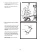 MAINTENANCE AND TROUBLESHOOTING Inspect and tighten all parts of the elliptical exerciser regularly. Replace any worn parts immediately. until the console displays correct feedback. When the Reed Switch is correctly adjusted, reattach the shields. Note: If you have questions as to which screw should be in which hole, see EXPLODED DRAWING B on page 27 and the PART LIST on page 24. To clean the elliptical exerciser, use a damp cloth and a small amount of mild soap.