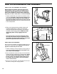 HOW TO FOLD AND MOVE THE TREADMILL HOW TO FOLD THE TREADMILL FOR STORAGE Before folding the treadmill, adjust the incline to the lowest position. If this is not done, the treadmill may be permanently damaged. Remove the key and unplug the power cord. CAUTION: You must be able to safely lift 20 kg (45 lbs.) in order to raise, lower, or move the treadmill. 1. Hold the treadmill with your hands in the locations shown at the right.