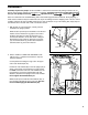 3. Set the Console Base (46) on the Handrails (60, 62). Route the Wire Harness (35) under the Console Base as shown and then press the Wire Harness up into the Console Base. Insert any slack into the Right Handrail (62). 3 46 62 Attach the Console Base (46) to the Handrails (60, 62) with the four 3/4” Screws. 4. Attach the Latch (34) and the two Latch Spacers (33) to the left Upright (32) with two Screws (28). Be careful not to overtighten the Screws.