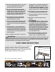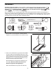 3. Attach the Weight Rack (90) to the Uprights (11) with the two Rack Washers (41) and Rack Bolts (89). Note: If necessary, spread the Uprights apart to align the holes in the Weight Rack with the holes in the Upright. 3 41 89 90 41 1 89 Insert the Left and Right Handrails (1, 88) into the upper end of the Uprights (11), with the lower end of each Handrail to the outside of the Extension Leg (34) as shown. Have a second person hold the Handrails until step 4 is completed. 11 11 88 34 4.