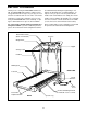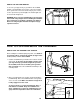 DIAGRAM OF THE CONSOLE Incline Control Displays Speed Control PulseSensor Key Clip CAUTION: Before operating the console, read the following precautions. • Adjust the speed in small increments. • The training zones marked beside the speed control are general guidelines only. See page 14 for more information. • Do not stand on the walking belt when turning on the power. • Always wear the clip (see the drawing above) while using the treadmill.