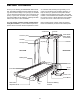 HOW TO LOWER THE TREADMILL FOR USE 1. Hold the upper end of the treadmill with your right hand as shown. Using your left thumb, press the storage latch and hold it. Pivot the treadmill until the frame and foot rail are past the storage latch. Opened Storage Latch 2. Hold the treadmill firmly with both hands, and lower the treadmill to the floor. Caution: To decrease the possibility of injury, bend your legs and keep your back straight.