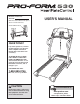 BEFORE YOU BEGIN ing this manual, call our Customer Service Department toll-free at 1-800-999-3756, Monday through Friday, 6 a.m. until 6 p.m. Mountain Time (excluding holidays). To help us assist you, please note the product model number and serial number before calling. The model number is PFTL51233. The serial number can be found on a decal attached to the treadmill (see the front cover of this manual for the location). Congratulations for purchasing the PROFORM® 530 treadmill.