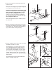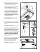 . Attach the ground wire on the Wire Harness (39) to the indicated hole in the Base (52) with a Ground Screw (84). 10 52 Ground Wire 39 84 Hole 11. Tighten two Belly Pan Screws (20) into the Belly Pan (66) and the Hood (65). Be careful not to overtighten the Belly Pan Screws. 11 65 20 66 12. See the lower drawing. Position the Uprights (53, 54) so that the treadmill Frame (51) is centered between the Uprights. 12 20 1 See steps 2, 5, and 6.
