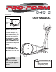 BEFORE YOU BEGIN Congratulations for selecting the PROFORM® 545S low-impact elliptical exerciser. The 545S is an incredibly smooth exerciser that moves your feet in a natural elliptical path, minimizing the impact on your knees and ankles. And the unique 545S features adjustable resistance, upper-body and stationary handlebars, and a multi-mode exercise monitor to help you get the most from your exercise. Welcome to a whole new world of natural, elliptical-motion exercise from PROFORM.