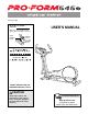 IMPORTANT PRECAUTIONS WARNING: To reduce the risk of serious injury, read the following important precautions before using the PROFORM® 545E elliptical trainer. 1. Read all instructions in this manual before using the elliptical trainer. 8. Wear appropriate clothing when using the elliptical trainer. Always wear athletic shoes for foot protection. 2. Use the elliptical trainer only as described in this manual. 9.