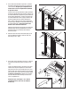 2. Avec l’aide d’une deuxième personne, soulevez doucement le tapis de course sur son côté droit comme illustré. Ne pliez pas complètement le Cadre avant d’avoir complètement assemblé le tapis de course. 2 14 Insérez l’autre Jambe d’Extension (89) à l’intérieur de la base des Montants (84). Placez un Écrou de la Jambe d’Extension (67) dans la partie inférieure de la Jambe d’Extension, et vissez un Boulon de la Jambe d’Extension de 2,5" (65) à l’intérieur de la partie supérieure de la Jambe d’Extension.