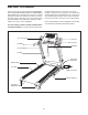 CONSOLE DIAGRAM Key Clip FEATURES OF THE CONSOLE The treadmill console offers a selection of features designed to make your workouts more effective. When you use the manual mode, you can change the speed and incline of the treadmill with the touch of a button. As you exercise, the console will display instant exercise feedback. You can even measure your heart rate using the handgrip pulse sensor. In addition, the console offers fifteen preset workouts; three of these use the crosswalk arms.