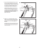 5. With the help of a second person, carefully tip the treadmill onto its right side. Partially fold the Frame (51) so that the treadmill is more stable; do not fully fold the Frame yet. 5 Remove and discard the indicated bolts (A) and the shipping bracket (B). B A Attach a Wheel (88) to the Base (87) with a 3/8" x 2" Bolt (7) and a 3/8" Nut (11). Do not overtighten the Nut; the Wheel must turn freely. 7 87 6. Press a Base Cap (83) into the Base (87).