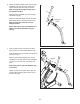 12. Attach the Water Bottle Holder (37) to the Upright (4) with two M4 x 16mm Screws (104). 12 4 104 104 37 13. While a second person holds the Console (7) near the Upright (4), connect the console wire to the Wire Harness (111). Then, connect the console pulse wires to the Pulse Wires (63). 13 7 Insert the excess wire downward into the Upright (4). Tip: Avoid pinching the wires. Attach the Console (7) to the Upright (4) with four M4 x 16mm Screws (104). Pulse Wires See step 3.