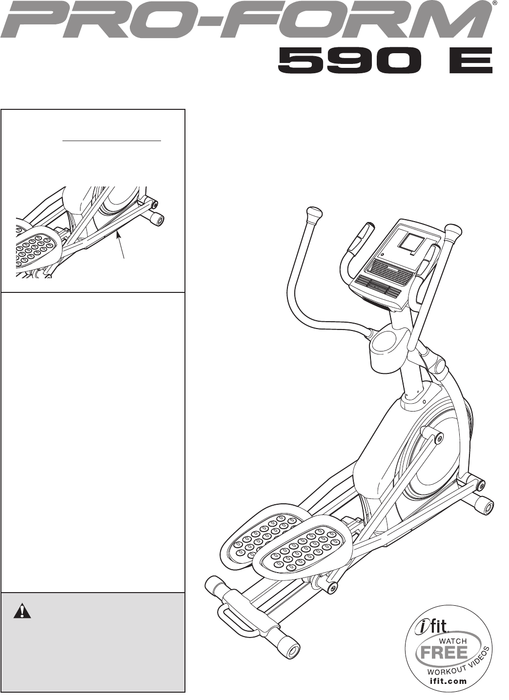 BEFORE YOU BEGIN manual. To help us assist you, note the product model number and serial number before contacting us. The model number and the location of the serial number decal are shown on the front cover of this manual. Thank you for selecting the revolutionary PROFORM® 590 E elliptical. The 590 E elliptical provides an impressive selection of features designed to make your workouts at home more effective and enjoyable. For your benefit, read this manual carefully before you use the elliptical.