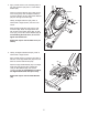 12. Attach the Water Bottle Holder (37) to the Upright (4) with two M4 x 16mm Screws (104). 12 4 104 104 37 13. Untie and discard the wire tie on the Wire Harness (111). While a second person holds the Console (7) near the Upright (4), connect the wires on the Console to the Wire Harness (111) and the Pulse Wires (63). 13 Tip: Avoid pinching the wires. Attach the Console (7) to the Upright (4) with four M4 x 16mm Screws (104). 63 See step 3. Tighten the M8 x 19mm Patch Screws (82).
