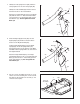 10. Attach the Crossbar (107) to the Handrails (82, 83) with four #10 x 3/4" Screws (2) and four #10 Star Washers (12). Do not tighten the Screws yet. 10 First Insert the Console Frame (102) into the Handrails (82, 83). Attach the Console Frame with four 1/4" x 1" Patch Bolts (9). Do not tighten the Patch Bolts yet. Be careful not to pinch the Upright Wire (87). 2 12 107 82 First, firmly tighten the two indicated #10 x 3/4" Screws (2). Do not overtighten the Screws or use a power tool.
