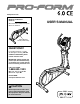 www.proform.com Model No. PFEL53911.1 Serial No. Write the serial number in the space above for reference. Serial Number Decal (under frame) QUESTIONS? If you have questions, or if parts are damaged or missing, DO NOT CONTACT THE STORE; please contact Customer Care. IMPORTANT: Please register this product (see the limited warranty on the back cover of this manual) before contacting Customer Care. CALL TOLL-FREE: 1-888-533-1333 Mon.–Fri., 6 a.m.–6 p.m. MT Sat. 8 a.m.–4 p.m. MT ON THE WEB: www.